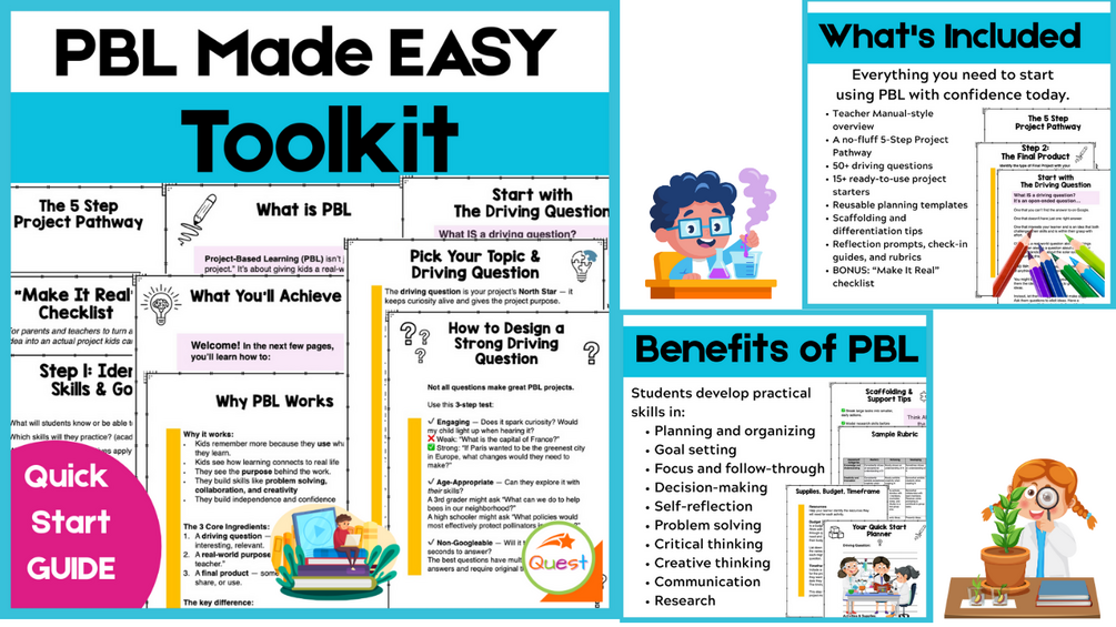 The PBL Made Easy Toolkit for Parents is your shortcut to turning ordinary topics into hands-on projects that spark curiosity, build confidence, and deepen learning. It’s the same classroom-tested framework I’ve used for years — reimagined for homeschool families and parents who want to teach differently.
